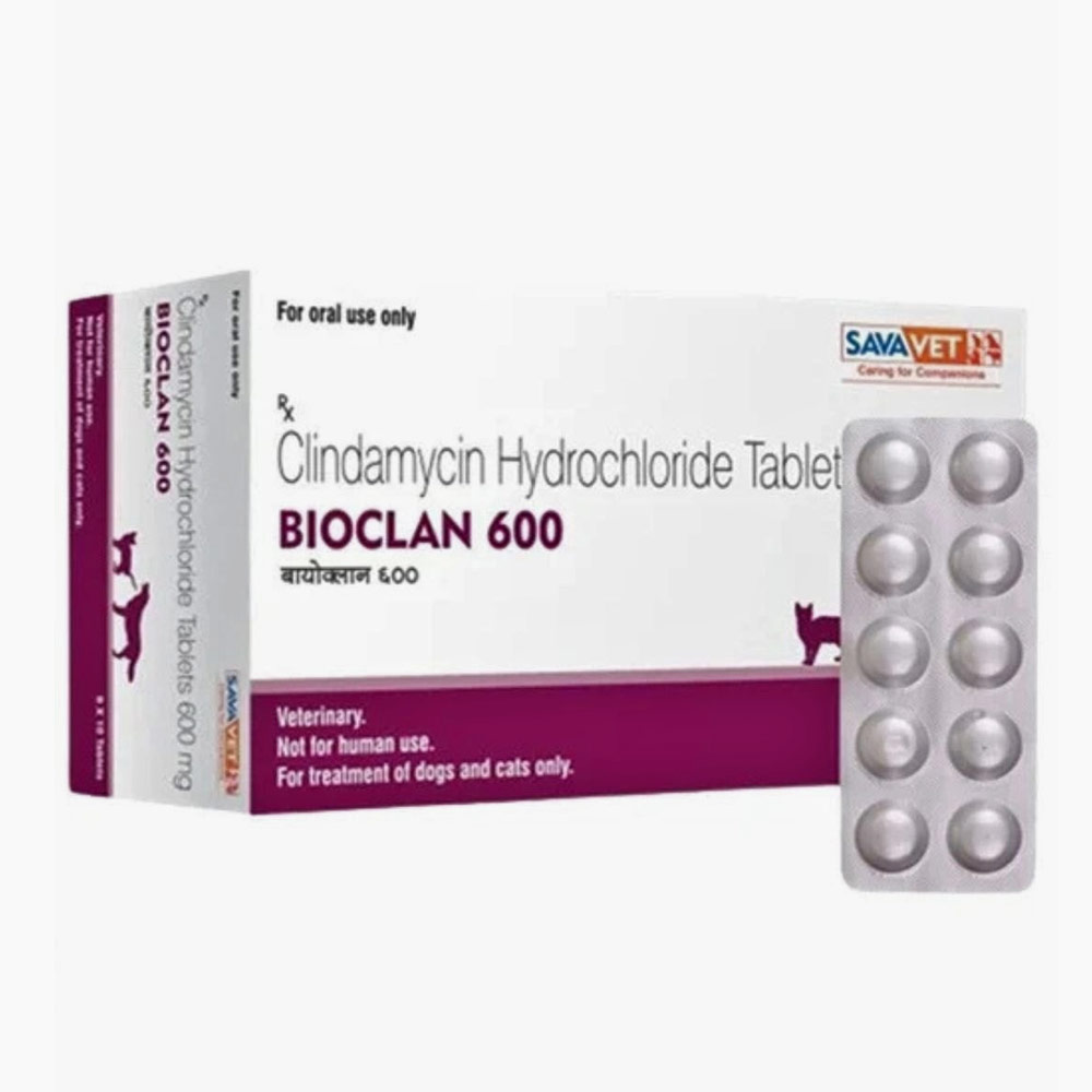 Bioclan 600mg Tablet is a veterinary specific anti-bacterial drug with superior aerobic and anaerobic bacterial coverage. It is also prescribed for deep wounds, osteomyelitis, dental infections, babesiosis and neosporosis. It is an excellent choice of drug for superficial and deep pyoderma with less side effects. It comes in meaty flavoured chewable tablet form for better palatability and has high dissolution profile exhibiting better bioavailability.