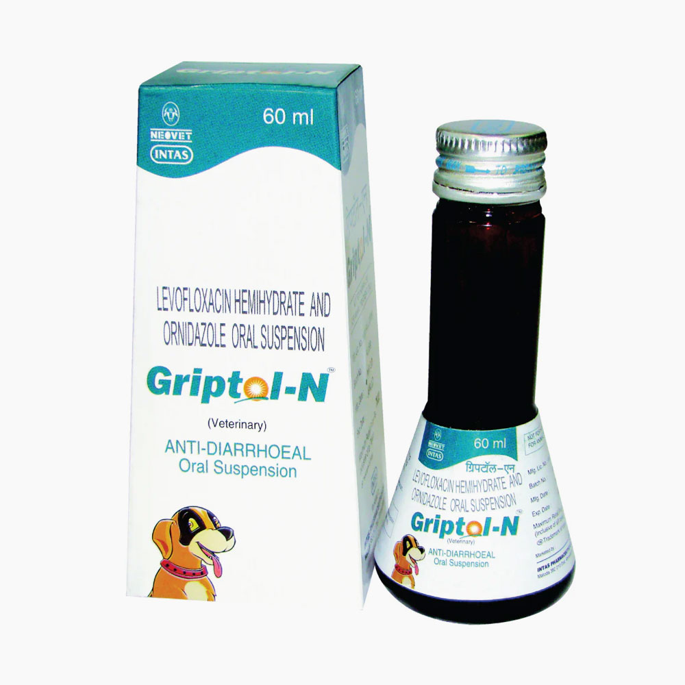 Griptol-N Suspension is indicated for Infectious gastrointestinal challenges. Contaminated water, food, or faeces causes the transmission of pathogenic bacteria and protozoa. These mixed infections lead to dysbiosis, diarrhea, malabsorption, and dysentery. Griptol-N Suspension provides firm control over diarrhoea. It has a broad spectrum of efficacy against Gram (+), Gram (-), Aerobic, and anaerobic bacteria. High efficacy against Coccidial, Giardial, and other protozoal infestations. It offers superior bioavailability and safety profile compared to metronidazole. It has the convenience of application with oral feeding spoon.