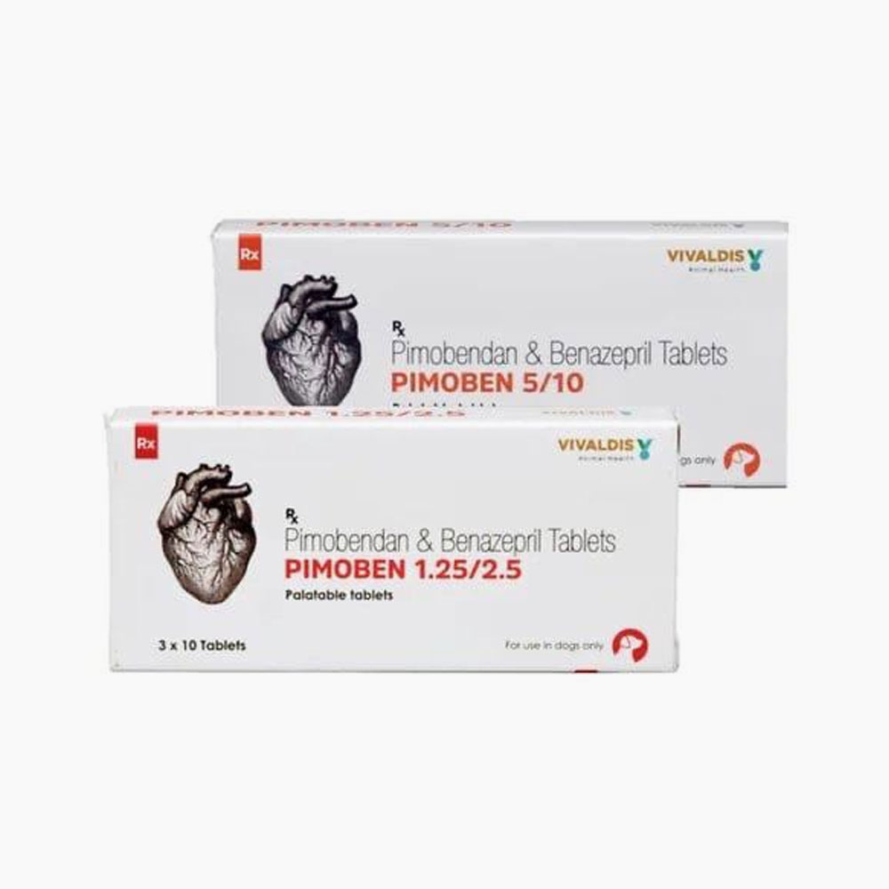 Pimoben Tablets are a potent heart medication designed specifically for dogs suffering from congestive heart failure (CHF) and other heart-related conditions. These tablets contain Pimobendan, a well-established cardiac drug that enhances heart function and improves the quality of life for dogs with heart issues. Available in 5mg and 10mg strengths, Pimoben tablets provide flexible dosing options to cater to the varying needs of dogs of different sizes and severities of heart conditions.