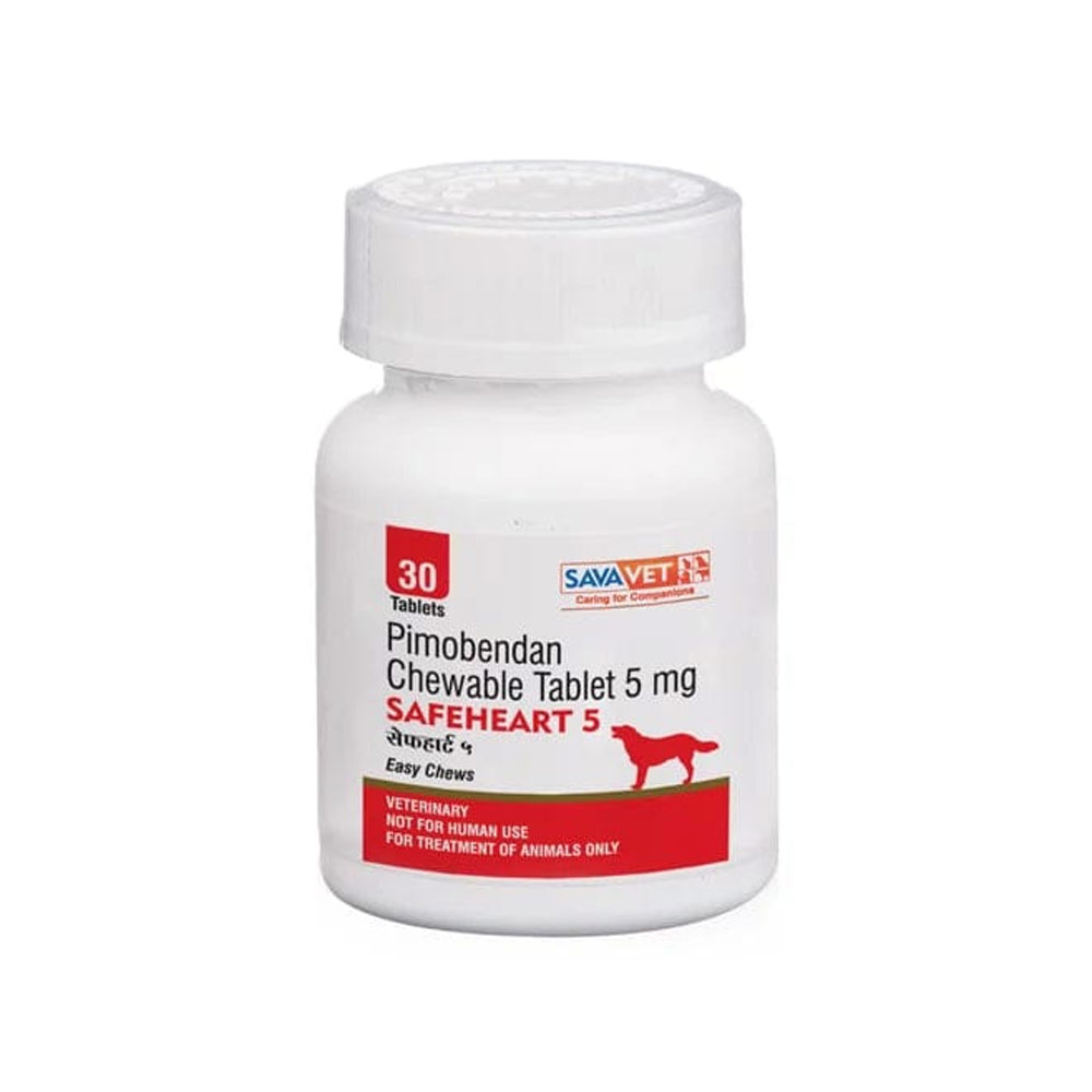Safeheart 5mg Tablet is a highly effective medication designed to manage heart conditions in dogs. It contains Pimobendan, a potent cardiac stimulant and vasodilator that helps improve heart function and enhance the quality of life for pets with congestive heart failure or other heart diseases. This pack contains 30 tablets, ensuring a comprehensive treatment regimen for your furry friend.