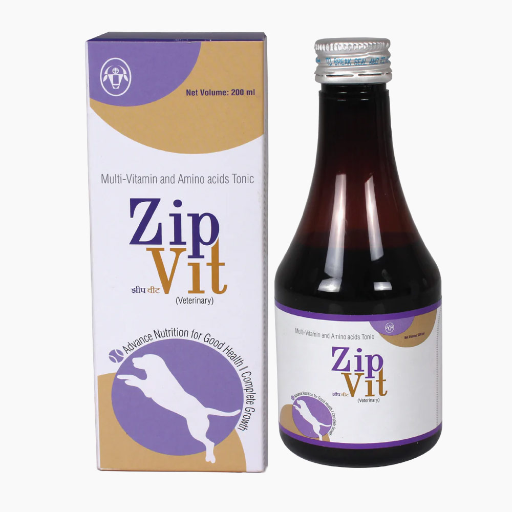 Zip Vit Multivitamin Tonic For Petscontains vast amount of vitamins and minerals that support your pet’s overall health, Zip Vit Multivitamin Tonic For Pets Multivitamin for Dogs is a great choice for any canine. With important vitamins like Biotin and Vitamin E, this multivitamin promotes healthy, supple skin and shiny coats.